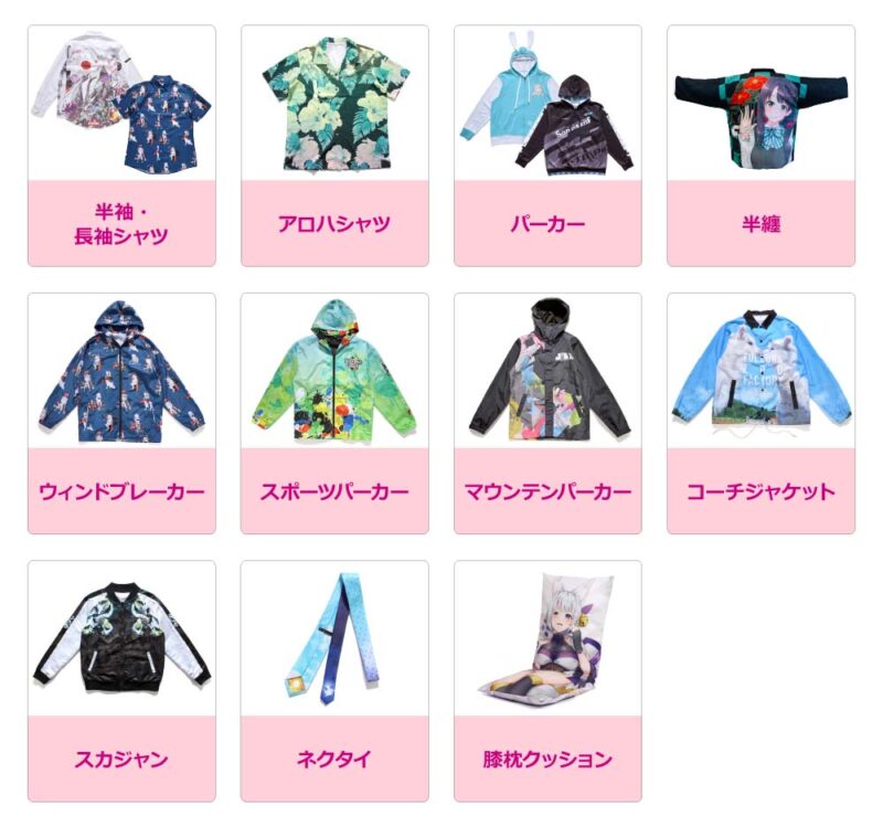 色校正グッズDタイプは下記の商品が対象になります。