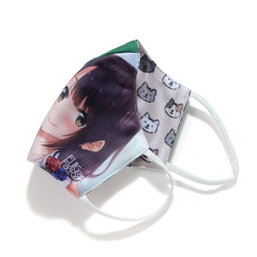 新しい生活習慣の中、日々クリエイターを応援できるグッズはないかと考えて開発したマスク。付け心地はもちろん、インパクトのあるプリントを特徴としています。伸縮性のあるオリジナル生地にフルカラーで印刷が可能。アニメイラストが映えるように生地の選択にも気を使いました。