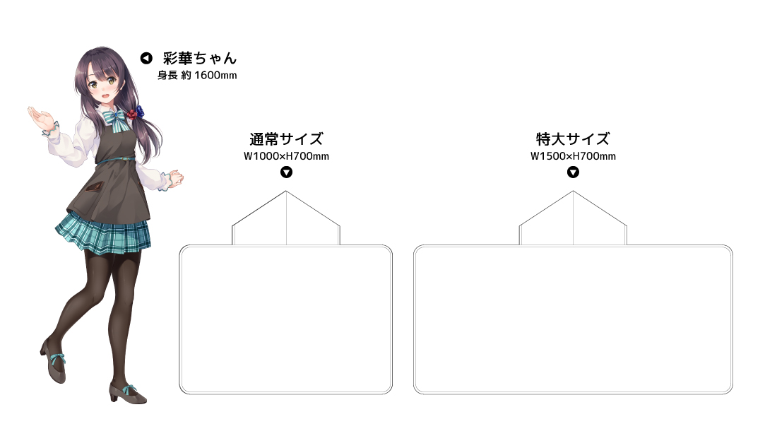 特大サイズ:W1500×H700mm印刷 フルカラー昇華転写(片面) 納品形態 個別OPP袋入 サイズ表