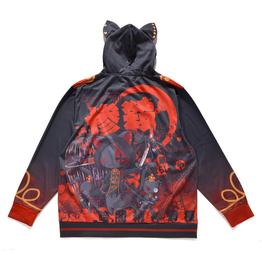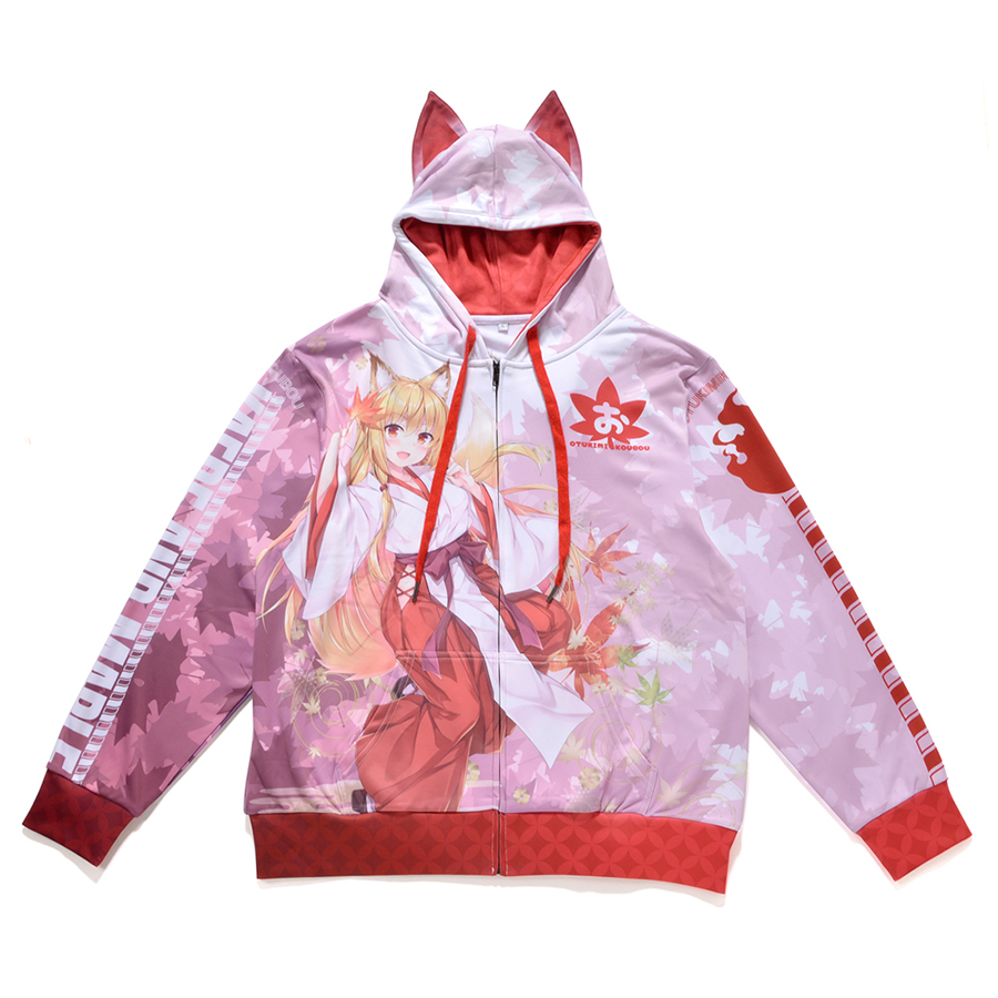 パーカー×ケモ耳の相性はバツグン。 可愛く着れる&イベントや記念グッズにぴったりの特別仕様。まるでテーマパークにいるような特別感を演出できます。 ケモ耳は全部で3種類(ウサギ/狐/猫)、パーカー本体はプルオーバー・ZIPアップの2つから選べます。単なる後付けではない最初から専用設計された「ケモ耳パーカー」は他にはないフルグラフィックファクトリー自慢の商品です。