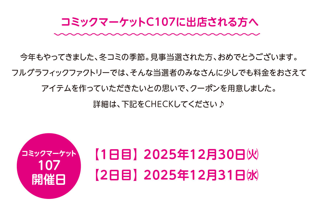 冬コミ用のアイテム作成をお考えの方へ、さらにうれしいご案内。