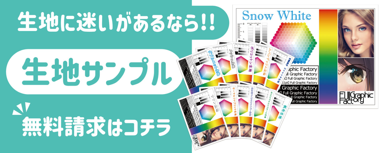 生地によっても印刷精度は変わることはご承知の上で考えますと、まずは生地サンプルでご確認いただくのがワンステップです。ちなみに弊社の生地サンプルにプリントされた黒の表現は4色ベタ(CMYK99)で印刷しております。