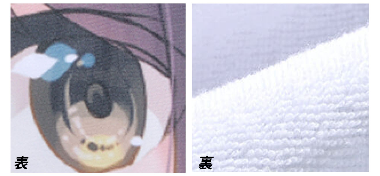 印刷面は抱き枕カバーにも使用している2WAYトリコット生地、裏面にはタオルにも使用されるポピュラーなパイル生地を使用した2層構造のブランケット。抱き枕カバーレベルの印刷制度と触り心地、裏面はふわっとした弾力と優しい肌触りと高い吸水性を兼ね備えた、夏におすすめの仕様です。2WAYトリコットが冷やりと気持ちが良く、パイル生地との相性は抜群です。