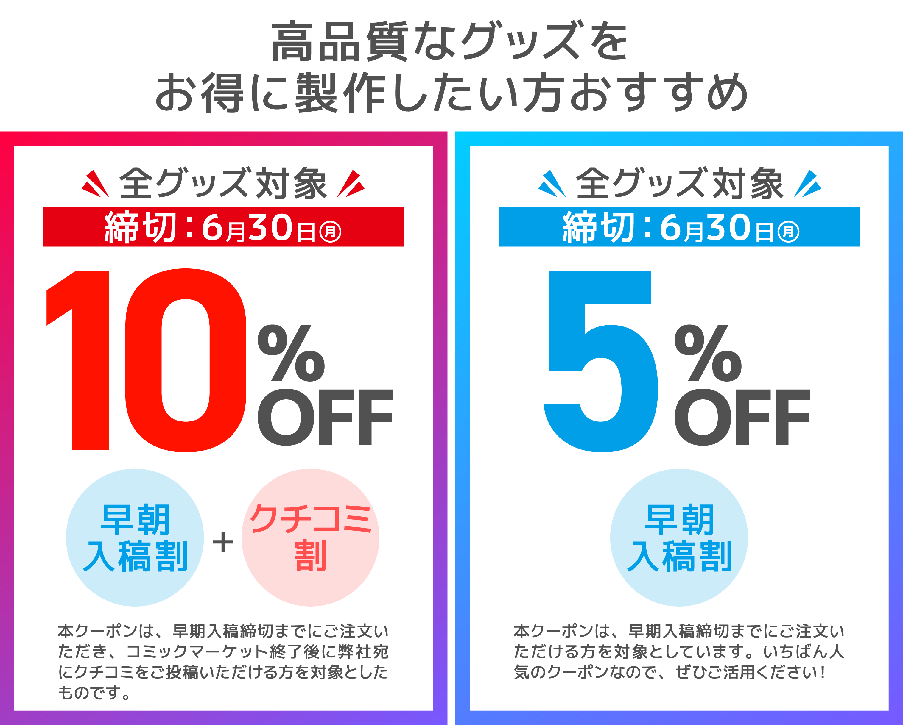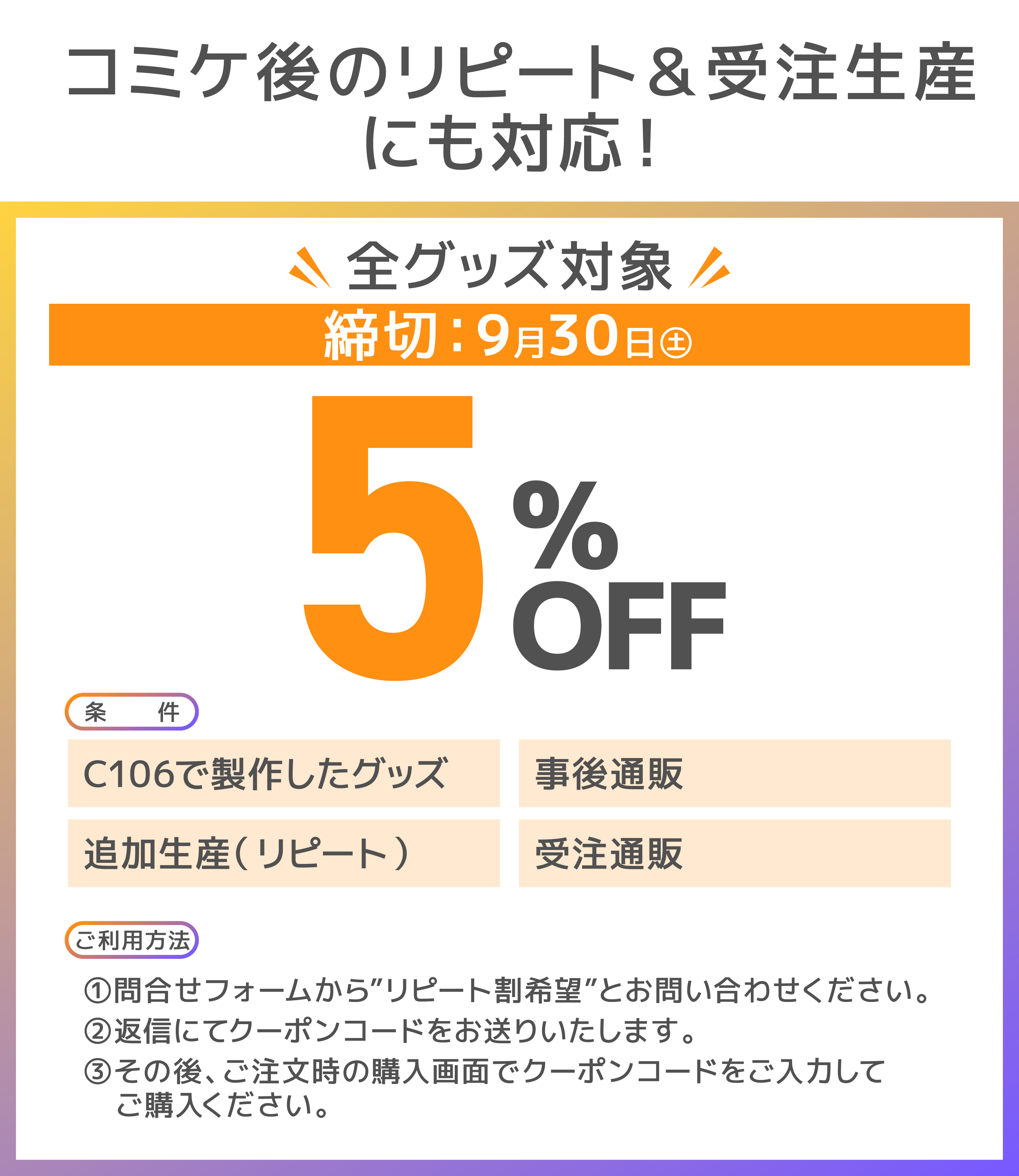 ③C106で製作したグッズのリピート注文・受注生産限定クーポン