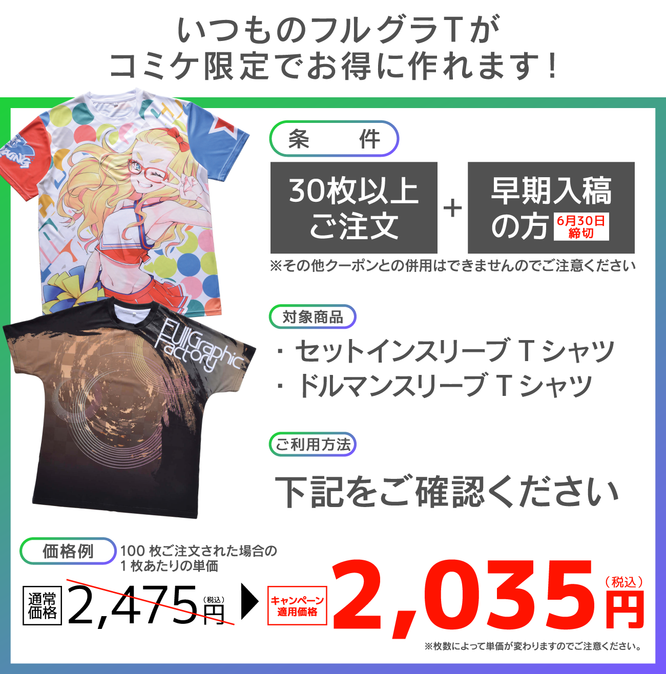 フルグラフィックTシャツはコミケ限定の特別価格となります。