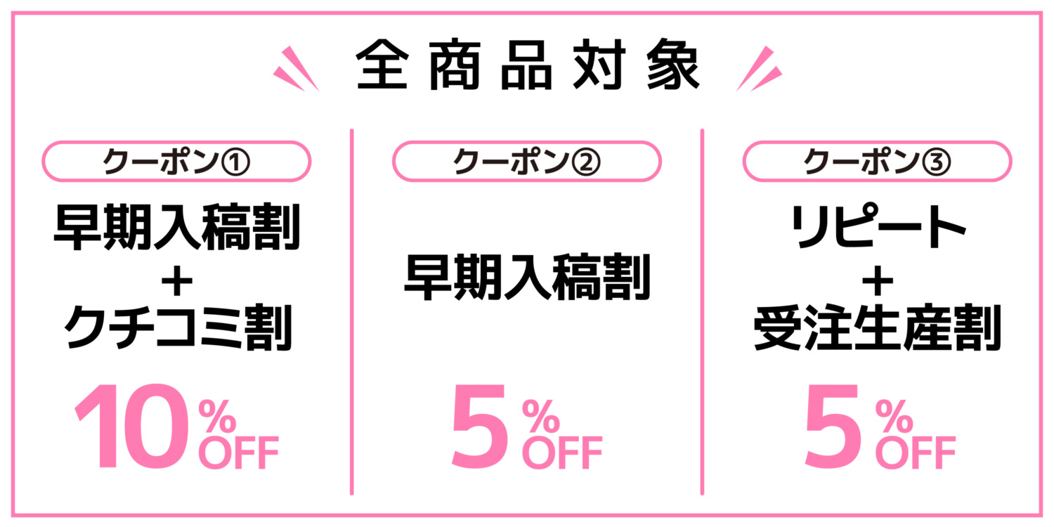 ②早期発注いただいた方限定の割引クーポン